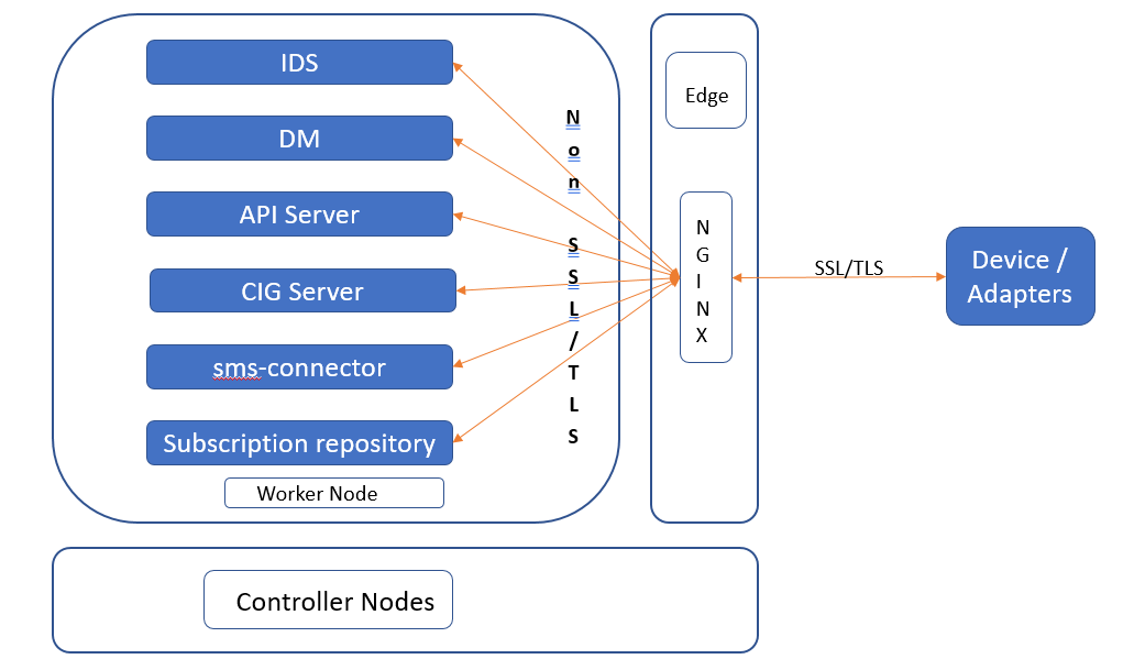 In IMPACT IoT, all the traffic towards application must be over the SSL. SSL has to be enabled at ingress controller and from the ingress controller, the traffic is over the non-SSL using an internal service.