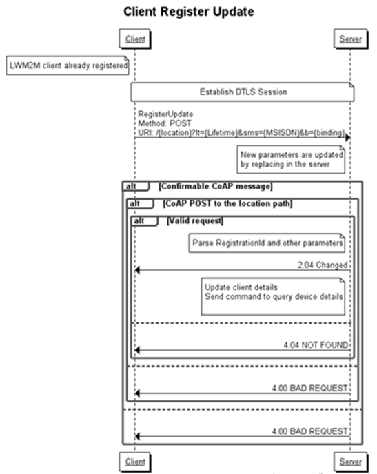 LWM2M client periodically or based on certain events, updates its registration information by sending an "Update" operation to the LWM2M server. The update operation must contain only the following parameters.
